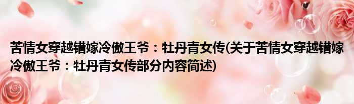 大家好,今天小方来说说一篇关于苦情女穿越错嫁冷傲王爷:牡丹青女传,关于苦情女穿越错嫁冷傲王爷:牡丹青女传部分内容简述的文章,那么现在就为大家来简单介绍下,希望对各位小伙伴们有所帮助。