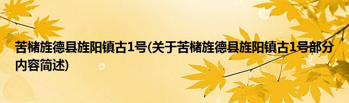 苦槠旌德县旌阳镇古1号(关于苦槠旌德县旌阳镇古1号部分内容简述)