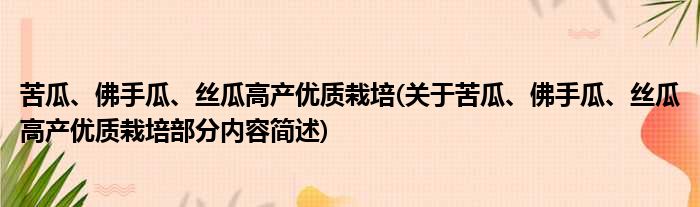 苦瓜、佛手瓜、丝瓜高产优质栽培(关于苦瓜、佛手瓜、丝瓜高产优质栽培部分内容简述)