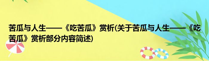 苦瓜与人生——《吃苦瓜》赏析(关于苦瓜与人生——《吃苦瓜》赏析部分内容简述)