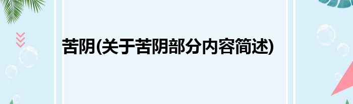 苦阴(关于苦阴部分内容简述)