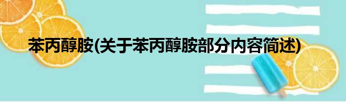 苯丙醇胺(关于苯丙醇胺部分内容简述)