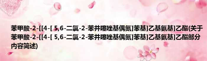大家好,今天小方来说说一篇关于苯甲酸-2-[[4-[ 5,6-二氯-2-苯并噻唑基偶氮]苯基]乙基氨基]乙酯,关于苯甲酸-2-[[4-[ 5,6-二氯-2-苯并噻唑基偶氮]苯基]乙基氨基]乙酯部分内容简述的文章,那么现在就为大家来简单介绍下,希望对各位小伙伴们有所帮助。