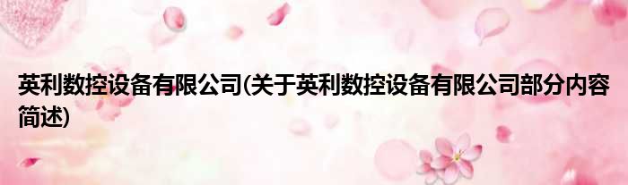 英利数控设备有限公司(关于英利数控设备有限公司部分内容简述)