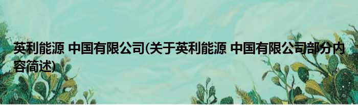 英利能源 中国有限公司(关于英利能源 中国有限公司部分内容简述)