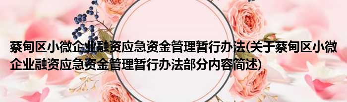 蔡甸区小微企业融资应急资金管理暂行办法(关于蔡甸区小微企业融资应急资金管理暂行办法部分内容简述)