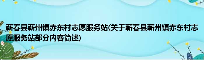 蕲春县蕲州镇赤东村志愿服务站(关于蕲春县蕲州镇赤东村志愿服务站部分内容简述)