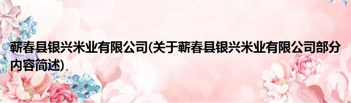 蕲春县银兴米业有限公司(关于蕲春县银兴米业有限公司部分内容简述)