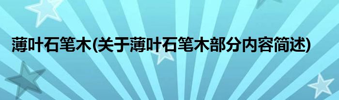 薄叶石笔木(关于薄叶石笔木部分内容简述)