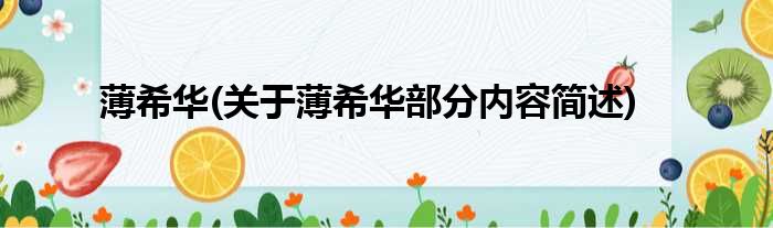 大家好,今天小方来说说一篇关于薄希华,关于薄希华部分内容简述的文章,那么现在就为大家来简单介绍下,希望对各位小伙伴们有所帮助。