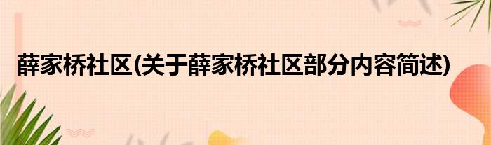 薛家桥社区(关于薛家桥社区部分内容简述)