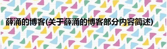 薛涌的博客(关于薛涌的博客部分内容简述)