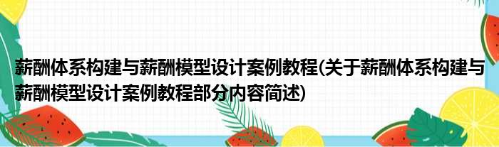 薪酬体系构建与薪酬模型设计案例教程(关于薪酬体系构建与薪酬模型设计案例教程部分内容简述)