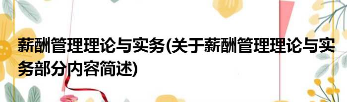 薪酬管理理论与实务(关于薪酬管理理论与实务部分内容简述)