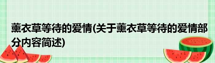 薰衣草等待的爱情(关于薰衣草等待的爱情部分内容简述)