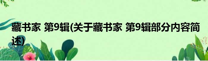 大家好,今天小方来说说一篇关于藏书家 第9辑,关于藏书家 第9辑部分内容简述的文章,那么现在就为大家来简单介绍下,希望对各位小伙伴们有所帮助。