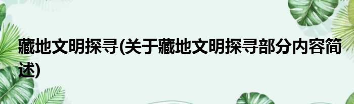 藏地文明探寻(关于藏地文明探寻部分内容简述)