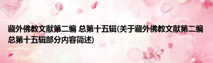 藏外佛教文献第二编 总第十五辑(关于藏外佛教文献第二编 总第十五辑部分内容简述)