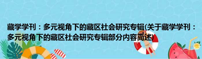 藏学学刊:多元视角下的藏区社会研究专辑(关于藏学学刊:多元视角下的藏区社会研究专辑部分内容简述)
