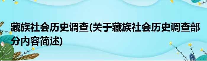 大家好,今天小方来说说一篇关于藏族社会历史调查,关于藏族社会历史调查部分内容简述的文章,那么现在就为大家来简单介绍下,希望对各位小伙伴们有所帮助。