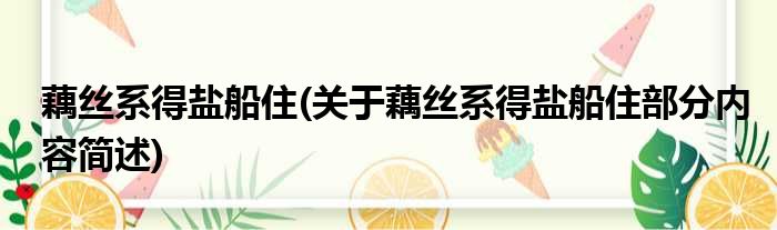 藕丝系得盐船住(关于藕丝系得盐船住部分内容简述)