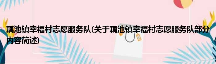 藕池镇幸福村志愿服务队(关于藕池镇幸福村志愿服务队部分内容简述)