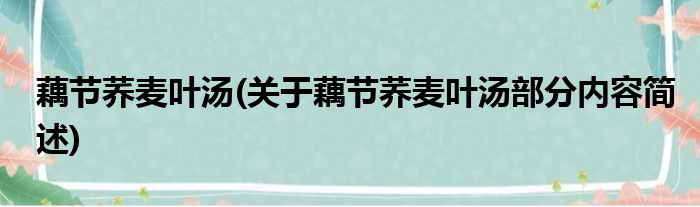 藕节荞麦叶汤(关于藕节荞麦叶汤部分内容简述)