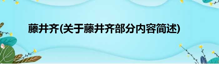 藤井齐(关于藤井齐部分内容简述)