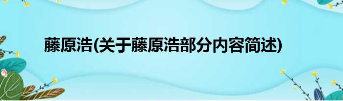 藤原浩(关于藤原浩部分内容简述)