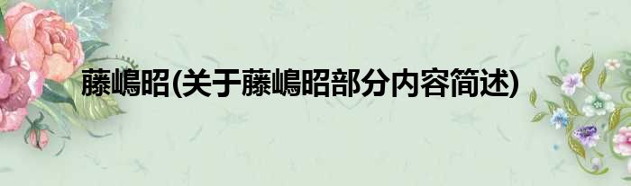 大家好,今天小方来说说一篇关于藤嶋昭,关于藤嶋昭部分内容简述的文章,那么现在就为大家来简单介绍下,希望对各位小伙伴们有所帮助。