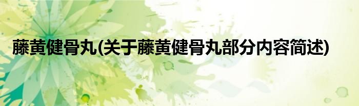 藤黄健骨丸(关于藤黄健骨丸部分内容简述)