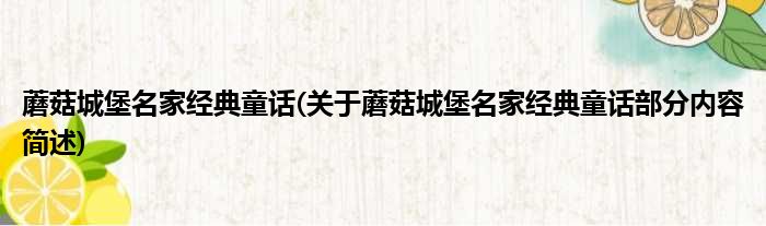 蘑菇城堡名家经典童话(关于蘑菇城堡名家经典童话部分内容简述)