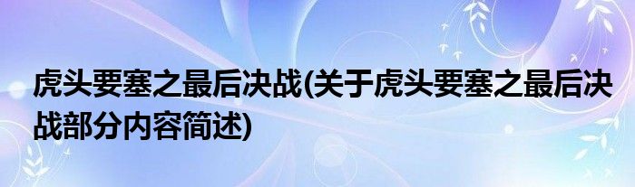 虎头要塞之最后决战(关于虎头要塞之最后决战部分内容简述)