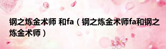 钢之炼金术师 和fa(钢之炼金术师fa和钢之炼金术师)