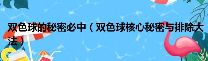 双色球的秘密必中(双色球核心秘密与排除大法)