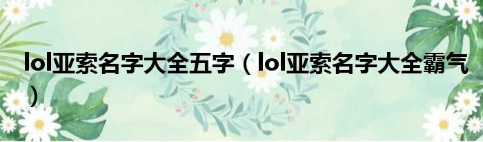 lol亚索名字大全五字(lol亚索名字大全霸气)