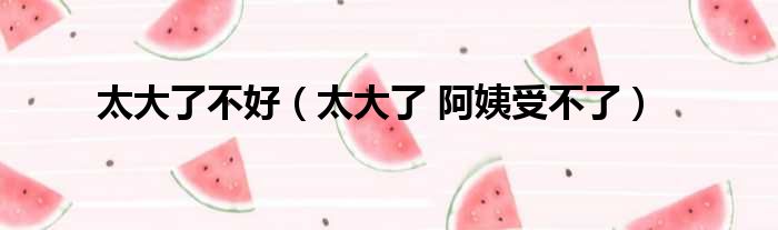 大家好,小东方来为大家解答以上的问题。太大了不好,太大了 阿姨受不了这个很多人还不知道,现在让我们一起来看看吧!