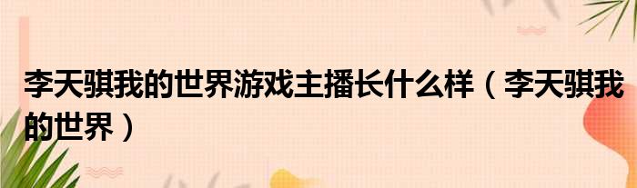 李天骐我的世界游戏主播长什么样(李天骐我的世界)