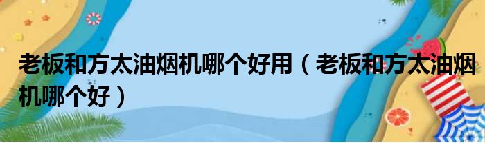 老板和方太油烟机哪个好用(老板和方太油烟机哪个好)