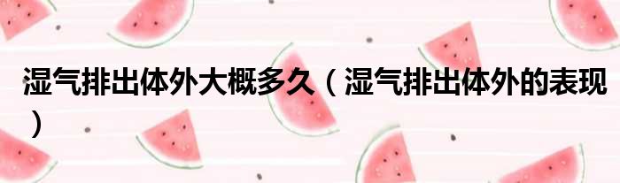 大家好,小东方来为大家解答以上的问题。湿气排出体外大概多久,湿气排出体外的表现这个很多人还不知道,现在让我们一起来看看吧!
