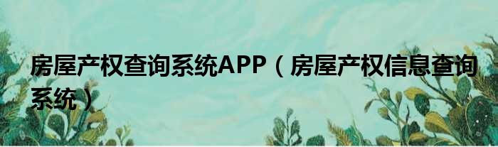 房屋产权查询系统APP(房屋产权信息查询系统)