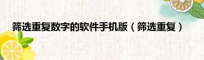 大家好,小东方来为大家解答以上的问题。筛选重复数字的软件手机版,筛选重复这个很多人还不知道,现在让我们一起来看看吧!