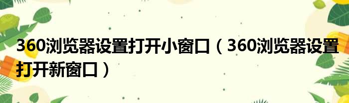360浏览器设置打开小窗口(360浏览器设置打开新窗口)