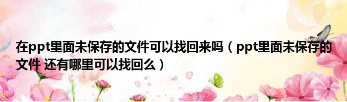 在ppt里面未保存的文件可以找回来吗(ppt里面未保存的文件 还有哪里可以找回么)