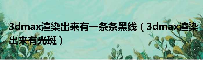 3dmax渲染出来有一条条黑线(3dmax渲染出来有光斑)