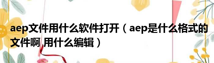aep文件用什么软件打开(aep是什么格式的文件啊 用什么编辑)