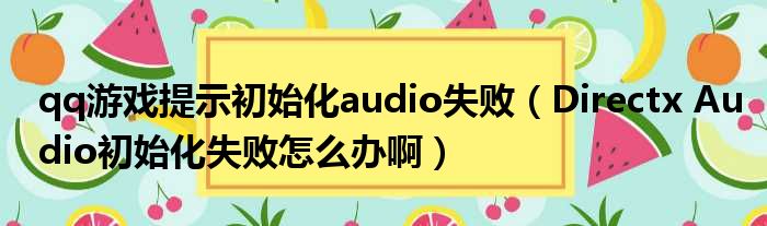 qq游戏提示初始化audio失败(Directx Audio初始化失败怎么办啊)