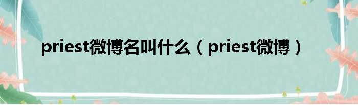 大家好,小东方来为大家解答以上的问题。priest微博名叫什么,priest微博这个很多人还不知道,现在让我们一起来看看吧!