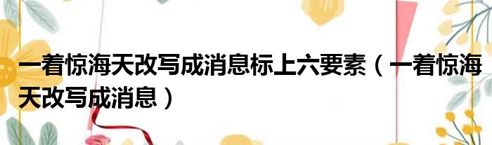 一着惊海天改写成消息标上六要素(一着惊海天改写成消息)