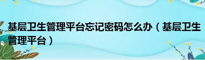 基层卫生管理平台忘记密码怎么办(基层卫生管理平台)